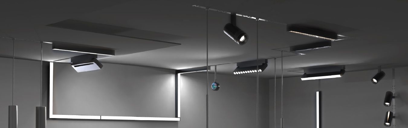 Avec le système de rails magnétiques Track 48, vous pouvez installer des rails encastrés au ras du plafond ou installer des luminaires à l'aide de rails en saillie et suspendus. À l'aide