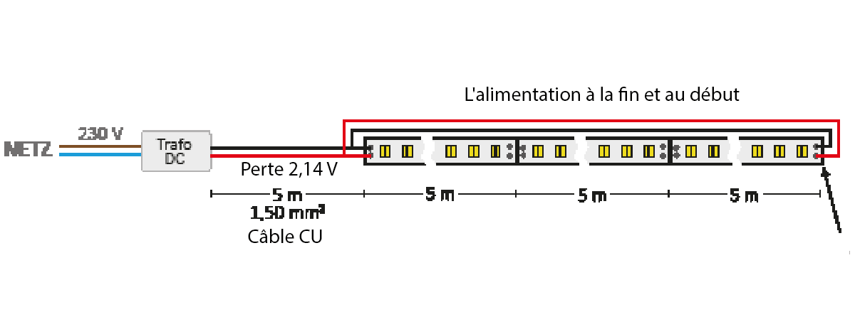 Avec des points d'alimentation supplémentaires, réalisés par un câble suffisamment dimensionné, on évite